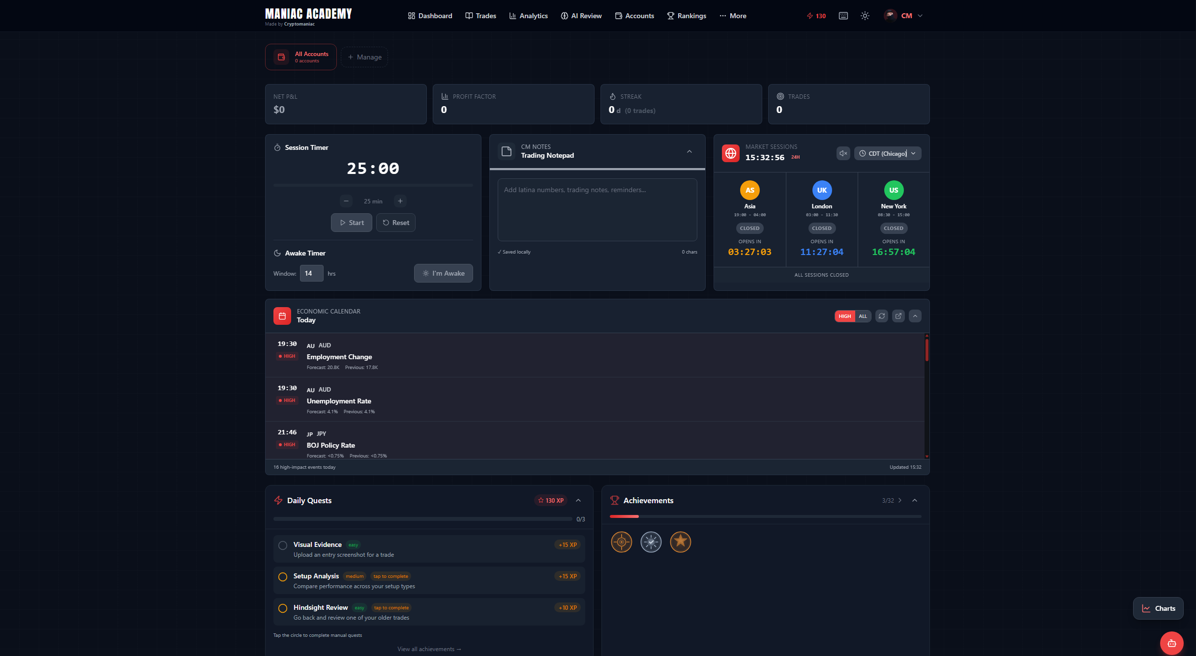 Track multiple prop firm accounts, monitor drawdowns, leaderboards, challenges, and achievement badges. Stay compliant and stay funded.